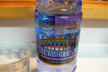 夜ご飯は哀愁のカルボナーラ&ハワイの水。ワイン断ち涙。