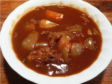 ワインやローリエなど使ってみました。ゴロっとした牛肉ではなく